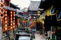 在无数小巷弯弯曲曲,纵横交错。古城中店铺林立,各式商品琳琅满目。在幽静的深巷里,不时会看到身着遥远年代的靛蓝色衣服,头戴红军时期的八角帽,或是“披星戴月”的纳西老人哼着纳西净地的歌曲悠闲地漫步,或三五成群玩着一种古老的纸牌游戏,或独坐在屋檐下,若有所思。在敞开的院门中,可以看到纳西人家的庭院里有各式花卉。静静的以红色角砾岩铺就五彩石路石上花纹图案自然雅致,与整个城市环境相得益彰,向世人述说着这座茶马古道上重镇驿站的漫长历史。